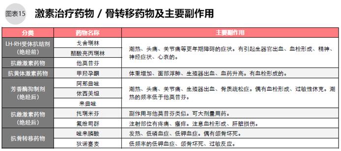 抗激素药物的副作用比抗癌剂小,副作用包括红潮、热潮、更年期障碍、性器官出血、精神神经症状等,偶有引起血栓形成,肺栓塞、脑梗、心梗的。LH-RH抗结剂、芳香酶抑制剂容易引起关节疼痛、骨质酥松。
