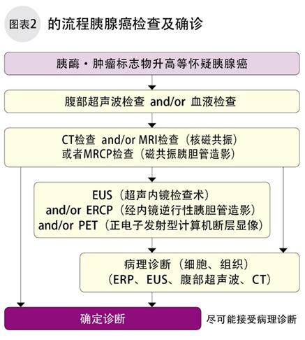 胰腺癌的最终确诊须在ERCP、EUS、腹部超声、CT等影像检查下,采取病变组织活检后病理诊断。难以判断是否可手术切除时,除了上述检查外,需要在腹部开4~5个孔,行腹腔镜手术切除部分病变组织进行病理诊断。