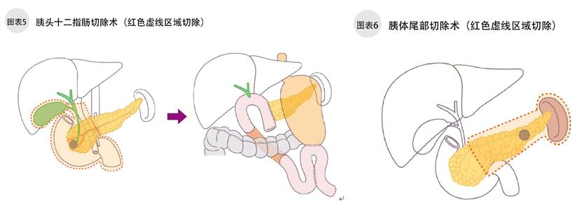 病灶在胰头的,手术须切除胰头、周围淋巴结、十二指肠、胆囊、胆管。因为胰头连接着十二指肠和胆管,这一区域的脏器作为整体都要切除。有时病灶位置特殊、扩散程度大的,还要切除一部分胃。胰头十二指肠切除术,在切除以上部位后,还要再建小肠、残留胆管、胰脏、胃的通道,以供食物、胆汁、胰液的通过。在日本,这样的大手术需要非常精细,一次手术约花6~8小时。