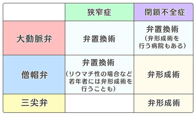 在考虑心脏瓣膜疾病的类型和患者的状况的同时,决定实施哪种手术方式, 但一般来说,通常选择如下。