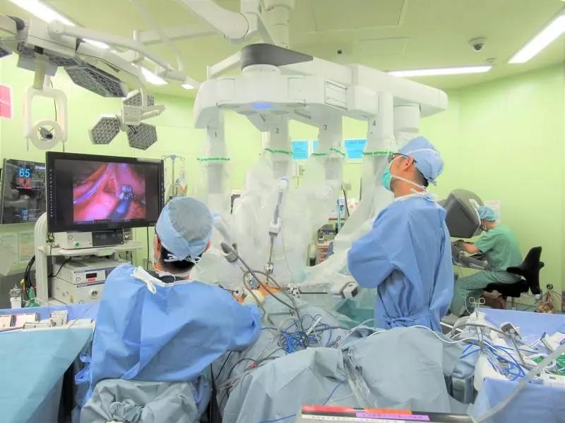 机器人手术是一种使用手术支持机器人的腹腔镜手术。主要用于早期至中度胃癌。在机器人手术中,医生坐在控制室内,通过操作可以自由弯曲的钳子进行操作。具有矫正镊子的手部运动的功能,可以进行稳定的手术。