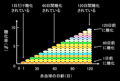 以上,针对HbA1c是通过什么样的机制来反映过去血糖进行了解说。糖化血红蛋白会随时间在红细胞中产生,同时也随会随着红细胞的凋亡而一起被代谢掉。由此机制,血红蛋白与过去血糖的关系就很清晰了。因此可以说,HbA1c与过去血糖的关系是有科学依据的。