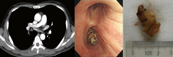 支气管镜鉴别出“酷似”肿瘤的病变——被误吸入肺的食物