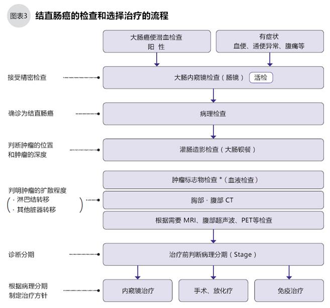 病理检查确诊为结直肠癌后,须进行CT等影像检查和肿瘤标记物等血液检查,以判断结直肠癌的扩散情况,查明淋巴节、肝脏、肺等是否有转移。检查是为了判断结直肠癌的具体分期等,为选择治疗手段提供依据。