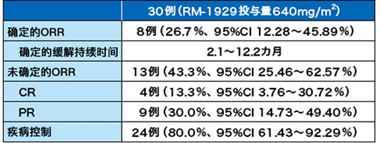 当RM-1929 剂量为320mg/m2时,3名患者中有2名实现了SD。