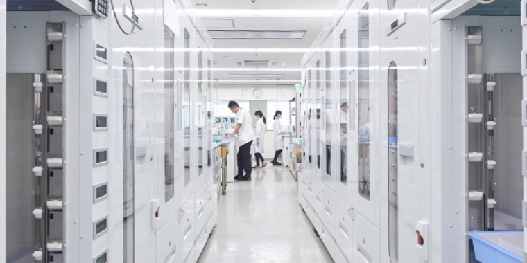 2017年医院引进了15台配药机器人,根据医生的处方自动配药。使取出和处理药品的部分过程自动化,从货架上按所需数量取出药片,并将其放入每个病人的托盘中 。大幅提高了药剂师的工作效率和安全性。