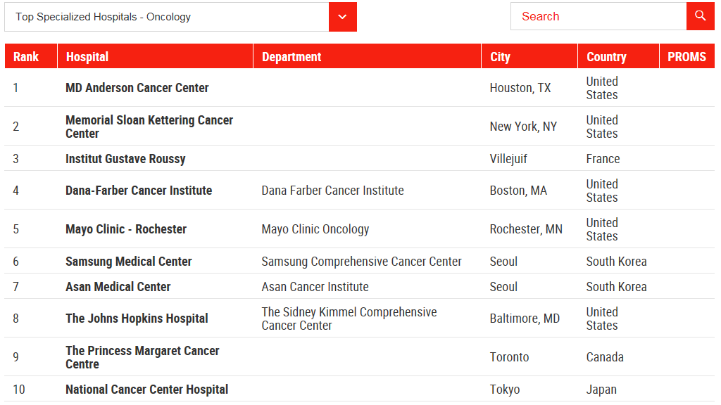 2023 年世界最佳专科医院(肿瘤学)排行榜(英文原文)
