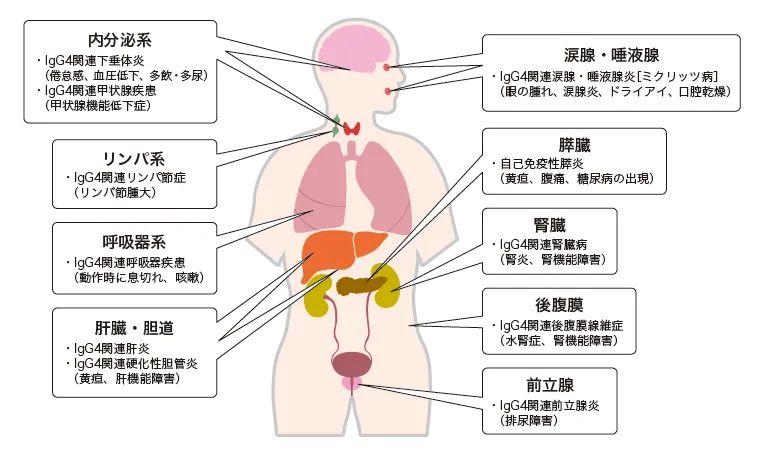 (图)IgG4相关疾病中出现病变的主要器官和症状