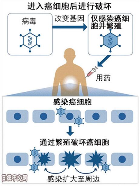在日本,改造传染病毒使其定向破坏癌细胞的技术不断被研发。日本国立癌症研究中心研究所和鸟取大学分别通过动物试验确认,这一技术对于现有医疗难以治疗的胰腺癌具有效果。此外,杏林大学将划时代的治疗方法和话题中的癌症taptap点点网服务网址相结合,提高了治疗效果,同时能抑制副作用。在癌细胞发生转移和复发,抗癌药物也不起作用的情况下,“病毒抗癌疗法”将作为新的治疗方法,争取实现实用化。