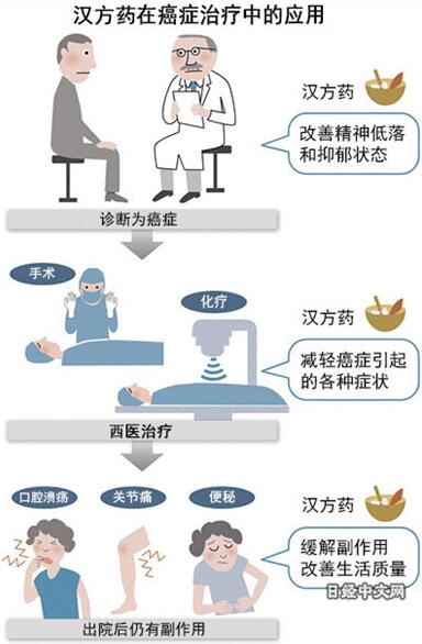 从中国传入的中医在日本实现了独立发展形成了汉方医学。更加科学有效利用“汉方药”的时机日益成熟。2015年12月,日本厚生劳动省公布的《癌症对策加速计划》明确表示,为了减轻抗癌药物副作用和癌症后遗症,要不断推进汉方药研究。