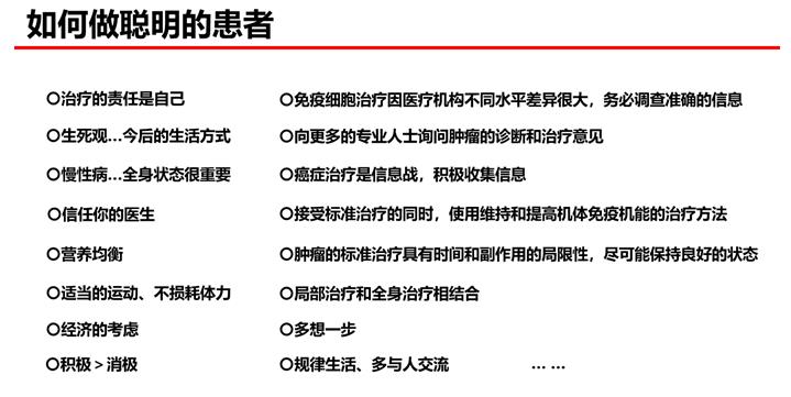 最后,我们认为有必要再次强调肿瘤治疗需要综合各方面因素及多种疗法。请患者和家属能够努力去学习、思考并收集可信的资料,首先做一名聪明的患者。