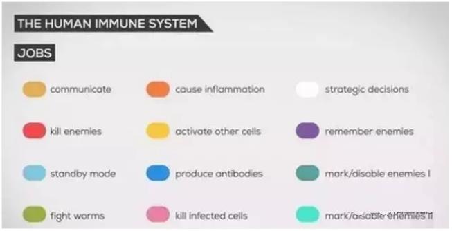 中央颜色代表细胞的主要工作,而周围的表示次要工作,现在免疫系统像这样呈现。