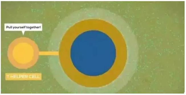 辅助T细胞告诉浆细胞,哪些类型是目前这次入侵中最需要的,无数的抗体会涌入血液充满全身,与此同时,在感染部位,情况越来越可怕,入侵者数量多了几倍并开始伤害身体,后卫和反攻细胞奋起反抗,但仍然死伤惨重。辅助T细胞通过命令支撑它们,使它们能撑得更久一些。