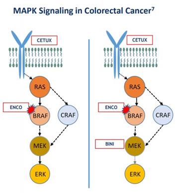 该研究中,对照组与以往报道的研究和疗效终点的历史数据一致,这强调了BRAF突变mCRC患者在当前可用的药物方案中通常预后不良。目前,还没有获FDA批准专门针对这类高医疗需求群体的治疗方案。BRAF突变发生在15%的mCRC患者中,V600E是最常见的突变。