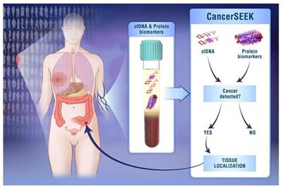 ▲CancerSEEK早筛检测图示(图片来源:约翰-霍普金斯医学院官网)