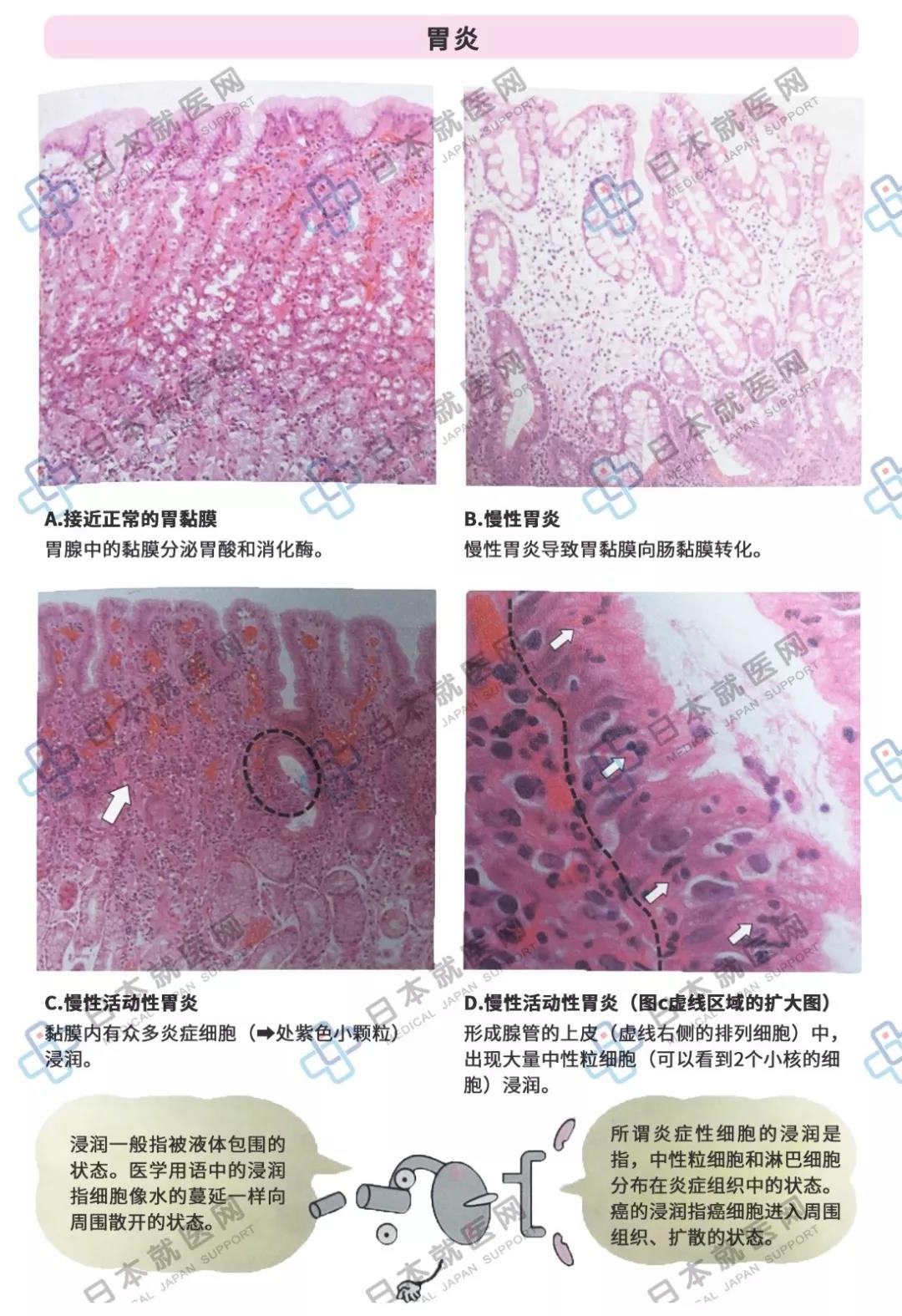 慢性胃炎的第一个关键词,与慢性扁桃炎、慢性膀胱炎一样:“炎症的反复”。胃分泌胃酸来溶解食物,粘液保护着胃壁不被胃酸溶解。发生急性胃炎的多数因素是黏液分泌减弱,反复发生急性胃炎时,上次炎症还没有治好又发生新的炎症,最后胃就不能恢复原状了。慢性炎症处于一边伤害一边修复的状态,慢性胃炎的发展结局是胃上皮的肠化生,导致胃粘膜萎缩。