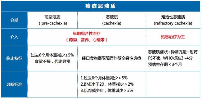 癌症恶病质的定义:“在正常营养支持下无法完全恢复机体状态,陷入晚期功能性障碍,骨骼肌量持续下降的多因素综合征。”