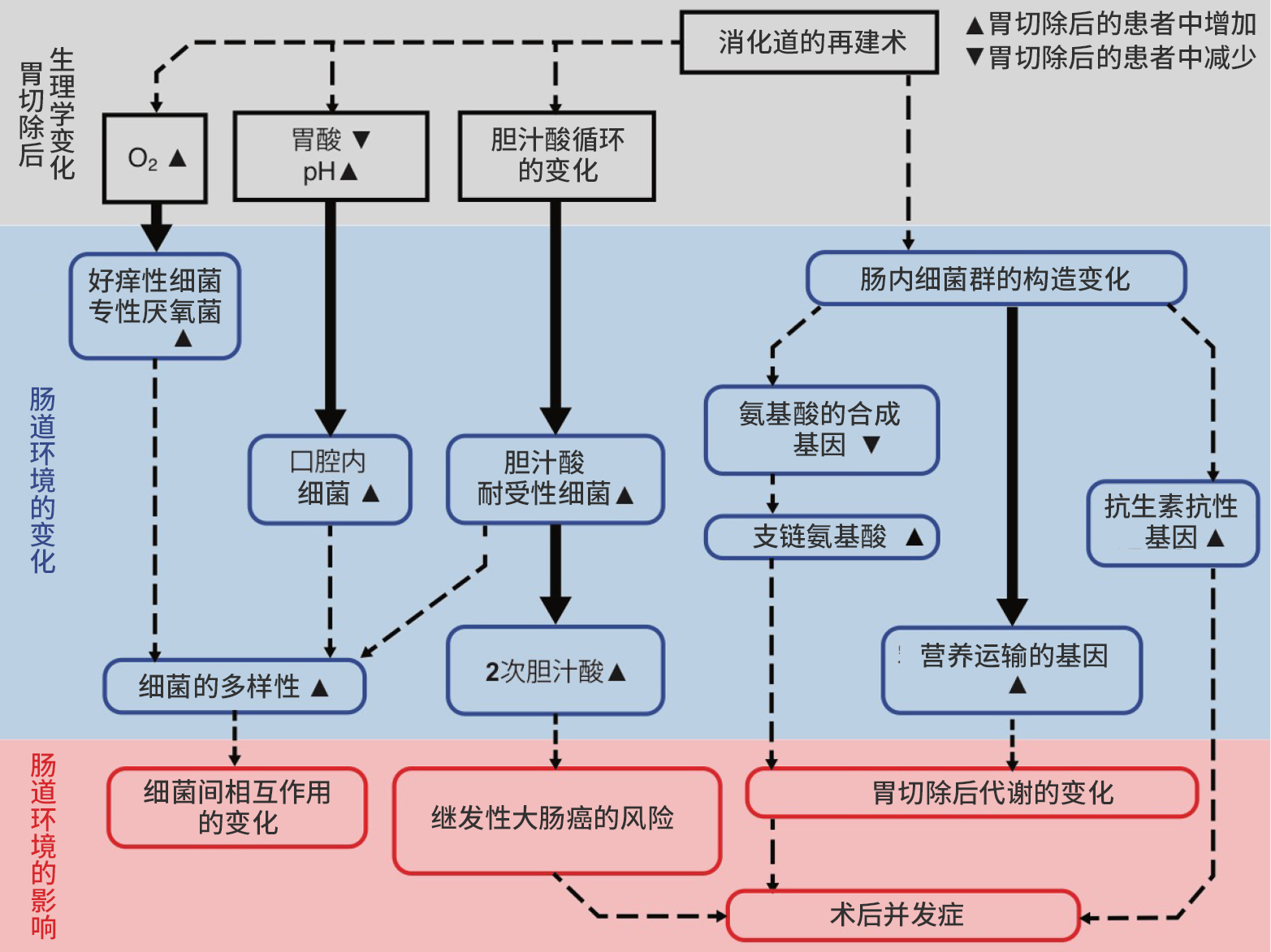 探讨 胃切除导致的肠道菌群构造及代谢物质的变化与术后并发症之间的关联。