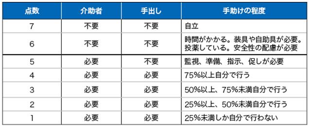 对日常生活活动能力(ADL)的评估,通常采用Barthel指数(BI)评定量表和功能独立性评定(FIM)量表。BI评定量表中包含用餐,移动,梳妆等共计10项内容,总分100分。在FIM量表中,包含10项运动功能,5项认知功能,以1到7的等级进行评估。(参考图表1).第五版手册扩展了日常生活活动能力(ADL)的测试范围,将其作为轻度认知功能障碍(MCI)的诊断标准,。