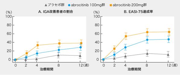 ②特应性皮炎严重程度指数(EASI)改进率达到75%或以上(EASI-75)