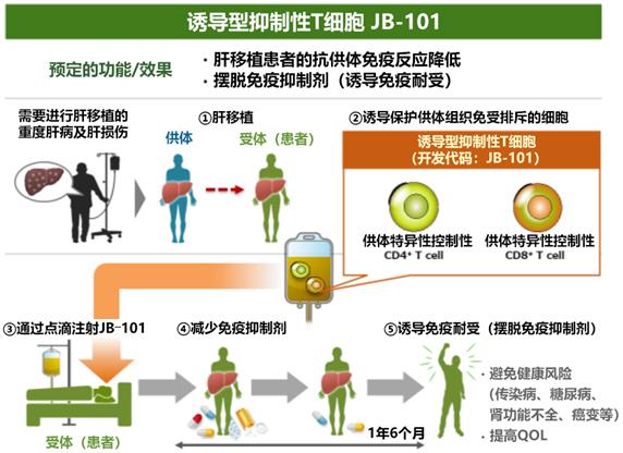 日本顺天堂大学的奥村康特任教授和内田浩一郎副教授主导的研究团队,向日本PMDA提交了关于实施“评估诱导型抑制性T细胞(以下简称JB-101)在活体肝移植中的免疫耐受诱导能力及安全性的I/II期临床试验”申请,将启动由医生主导的临床试验。