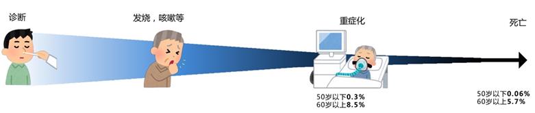 A:新冠病毒感染者中,重症患者和死亡患者的比例根据患者年龄而异。在老年人中比例较高,在年轻人中比例较低。对比之前,重症患者人数或死亡比例有所下降。重症率约为1.6%(50岁以下0.3%,60岁以上8.5%)。死亡率约为1.0%(50岁以下0.06%,60岁以上5.7%)。