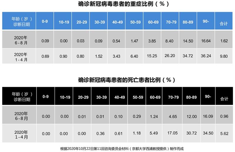 以上数据由日本厚生劳动省根据京都大学西浦教授,以及新冠病毒感染(COVID-19)诊疗手册(第5.1版)制作而成
