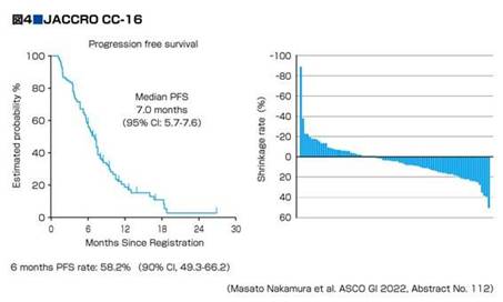 mFOLFOX6+贝伐单抗的一线治疗时加入纳武利尤单抗,并没有显著延长无进展生存期(PFS)。